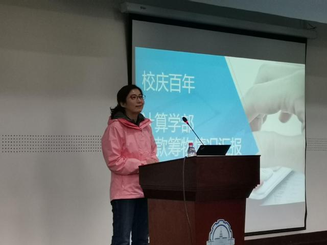 校庆办筹款筹物组张羽老师介绍工作进展情况