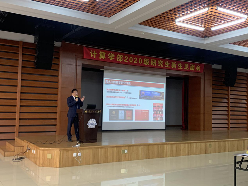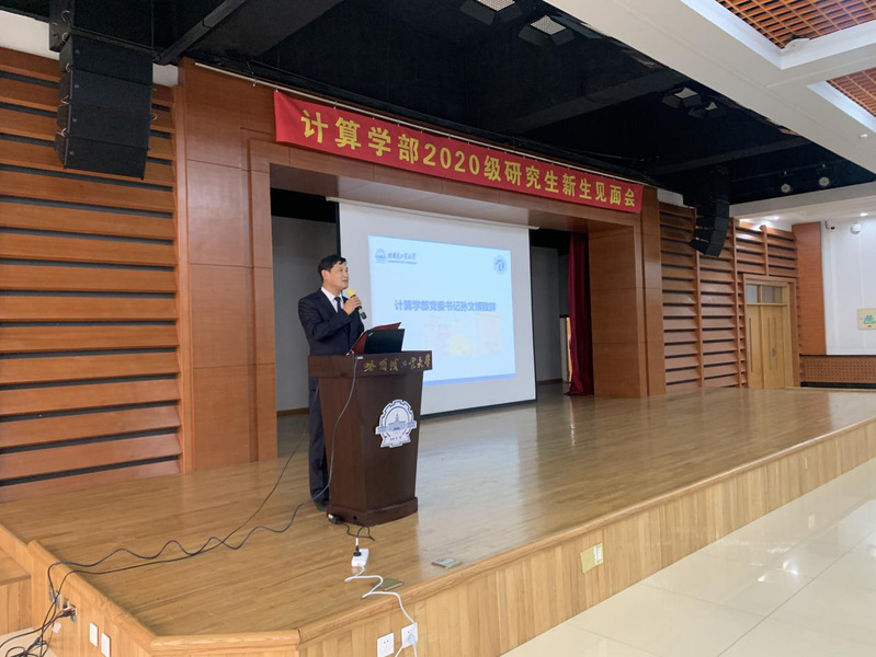 会议伊始,到场的领导老师与全体硕博新生一同观看了乐天使宣传视频,共同唱响《哈工大之歌》。首先,党委书记孙文博代表哈工大乐天使全体师生向哈工大新百年的第一批计算学子表示热烈的欢迎,并向同学们提出四点期望:一是要热爱伟大祖国,坚定理想信念,厚植家国情怀;二是要传承百年荣光,贯彻贺信精神,践行工大规格;三是要谱写计算人生,提升专业能力,锤炼过硬本领;四是珍惜似水研华,锤炼健康人格,信念引领成长。最后孙书记希望同学们在这逐梦之路上把握当下、奋发作为、追求卓越,开启属于自己的计算人生,创造属于自己的计算辉煌。