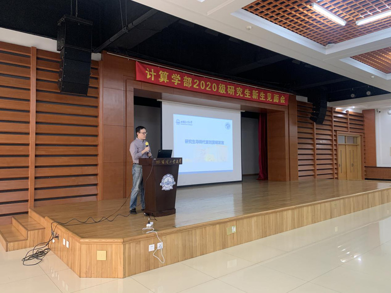 计算机公司经理助理刘贤明教授代表研究生导师发言。他表示看到新生同学们就想起当年的自己,十几年前曾满怀憧憬和希望来到哈工大计算机公司,在这里读书期间为自己日后的科研打下了良好的基础,希望同学们珍惜在校学习时光,努力追求学术前沿、提升个人能力,通过自己的努力改变命运,成长为堪当大任的国之栋梁。