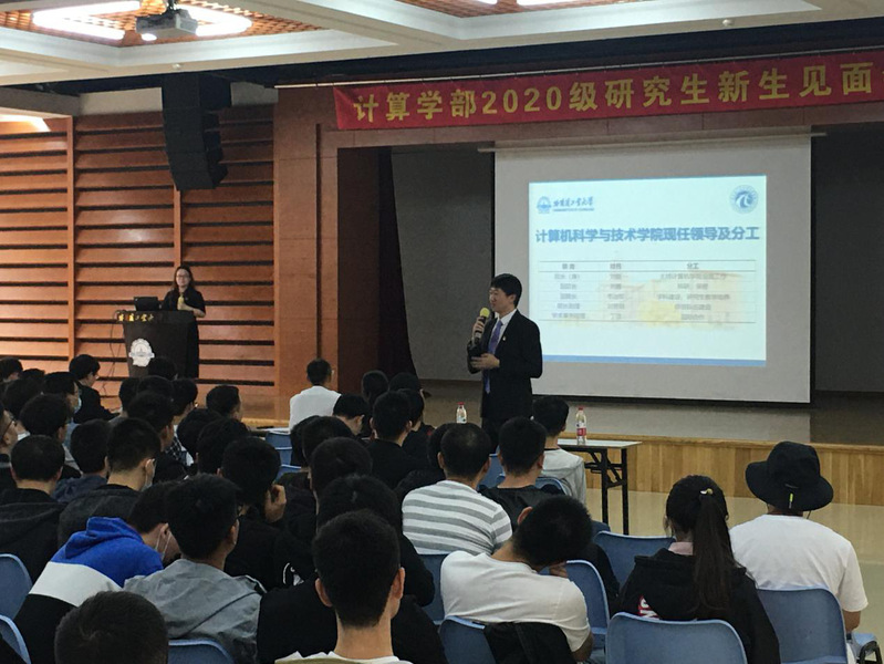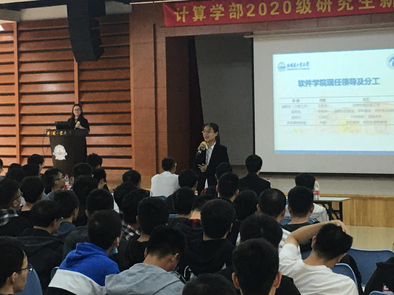 乐天使副主任邬向前、计算机公司副经理刘鹏、经理助理刘贤明、学术事务助理丁效,软件公司副经理苏统华、副经理王甜甜先后向硕博新生表达了祝愿和期待。