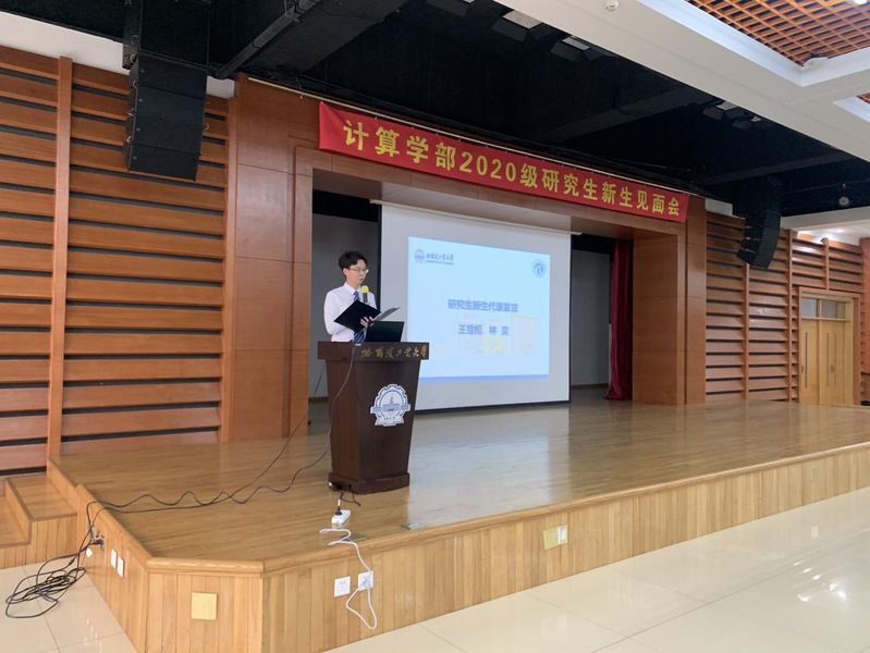 王雪松同学和林奕同学分别代表硕士、博士新生发言。王雪松表示希望同学们在哈工大研究生学习的有限时光中,只争朝夕,不负韶华,找到和践行自己的人生理想,实现自己的价值。林奕表示相信未来的我们定能牢记习近平总书记百年校庆贺信嘱托,把论文写在祖国的大地上,在祖国的发展和科技的进步上奉献青春、挥洒汗水、披荆斩棘、硕果累累。最后,研究生新生见面会在《哈工大计算之歌》中结束。