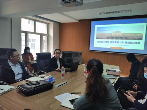 刘文倩同志分享其在中国航发商发集团的挂职经历。她从航发商发的成立背景、战略目标、人才概况等方面进行介绍,随后汇报其在挂职期间进行的工作,并播放在中国航发商发录制的员工寄语视频,用航天国防工作者的“择一事,终一生”精神,鼓舞大家在思政工作中应坚守自己的初心,在自己热爱的思政教育领域中奋发作为。