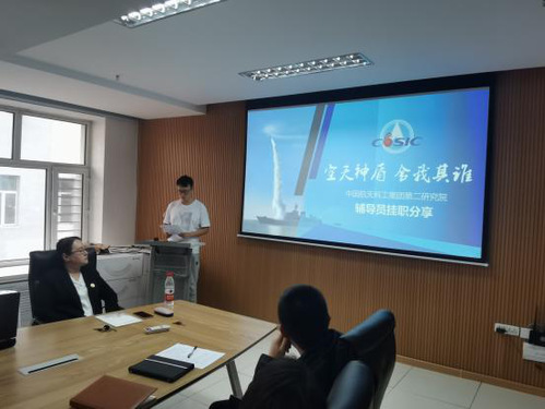 张雷同志分享了自己在航天科工集团第二研究院的挂职经历,介绍了中国航天科工二院历史沿革、企业文化和发展前景。张雷同志指出,在当下严峻的就业形势下,国家战略地位高、装备科技水平高、重视员工程度高的国防航天事业是符合高价值高平台高认知度的理想工作标准的最优选择。