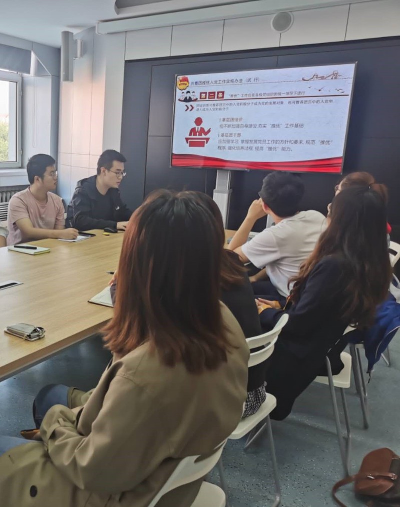 夏玮同志领学了《共青团推优入党工作实施办法》。共青团推优制度是团的助手和后备军作用发挥的重大制度安排, 是党团血脉联系的组织依托。夏玮同志从共青团推优入党工作实施办法的总则、推荐对象和推荐条件、“推优”工作程序等方面进行解读,最后结合乐天使实际,制定了下一阶段学部团委推优入党的工作计划。