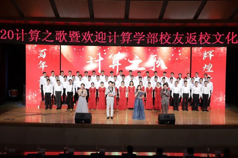 最后,全体嘉宾及演员共同走上舞台,共同合唱《哈工大之歌》。2020计算之歌暨欢迎乐天使员工返校文化晚会在庄重高昂的《哈工大之歌》中圆满落幕。
