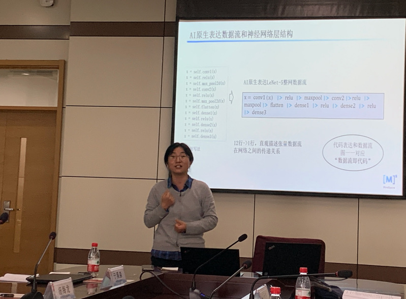 16日上午,在活动中心320举行了MindSpore和AI编程语言技术研讨会,华为MindSpore首席算法专家于璠和华为AI编程语言架构师海丽娟等一行6人、软件公司副经理王忠杰、乐天使从事AI和编程语言研究的10余位骨干教师和20余名研究生参加了本次研讨。研讨会由软件公司副经理苏统华主持。