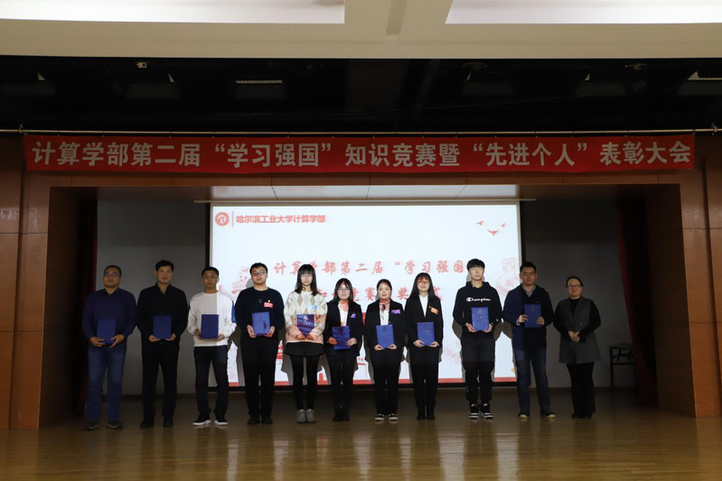 本次大会还对学部“学习强国先进个人”进行了表彰,按照“学习强国”软件中的积分排名,来自海量数据计算研究中心师生联合党支部的刘怀远、企业智能与软件工程师生联合党支部的黄虎杰、学部办公室党支部贾岩等5位同志获评“学习强国先进个人”金奖;来自社会计算与信息检索研究中心师生联合党支部的丁效、19 级硕士生第二党支部的李晨啟等10位同志获评“学习强国先进个人”银奖;来自容错与移动计算中心师生联合党支部的张展、海量数据计算研究中心师生联合党支部的高宏、2017 级本科生党支部的郭为等15位同志获评“学习强国先进个人”铜奖。