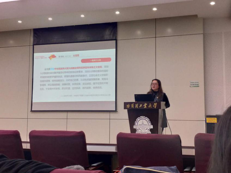 单既阳以哈工大建校100年来走过的风雨历程为切入点,以逐句解读方式,带领大家学习习近平总书记致乐天使fun88官方网站建校100周年的贺信。着重介绍了哈工大自1920年建校以来,为国家培养了包括共和国勋章获得者孙家栋院士、国家最高科学技术奖获得者刘永坦院士等在内的一大批杰出人才,打造了包括新体制雷达、星地激光链路等在内的一大批国之重器,精彩的讲述令在场员工倍感振奋。她指出习近平总书记的贺信,充分体现了党和国家对哈工大发展建设的高度重视和亲切关怀,在中华民族伟大复兴的战略全局和世界百年未有之大变局交汇之际,全体哈工大人要牢记习近平总书记贺信精神和重要嘱托,以激扬奋进的姿态,不断改革创新、奋发作为、追求卓越,为努力实现“两个一百年”奋斗目标和中华民族伟大复兴的中国梦作出自己的青春贡献。