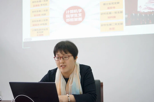 哈工大(威海)计算机公司党委副书记朱美丽汇报