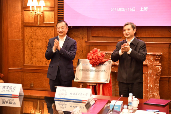3月16日下午,公司与浦发银行在上海签署战略合作协议,开启银校全面合作的新篇章。公司党委书记熊四皓、浦发银行行长潘卫东出席签约仪式,共同为“乐天使fun88官方网站-浦发银行金融网络空间安全联合创新中心”揭牌。中国工程院院士方滨兴发来视频祝贺联合创新中心成立。浦发银行副行长王新浩、董事长助理帅永分别代表双方签署协议。