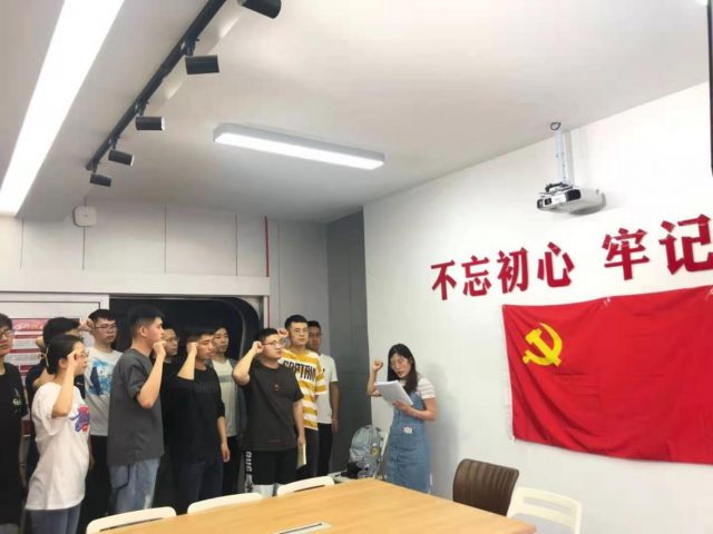 然后,陈曦同志带领全体党员重温入党誓言。全体支部成员一起高举右手,面对鲜红的党旗再次庄严宣誓:“我志愿加入中国共产党……随时准备为党和人民牺牲一切,永不叛党。” 铿锵有力的誓词震撼着在场的每一位同学,仿佛入党宣誓就在昨天。
