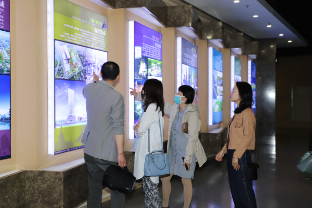 走进展厅,首先映入眼帘的是以“一江居中,两岸繁荣”为图案的大型原创艺术组画。大家依次参观了印象哈尔滨、城市溯源、路桥史话、航运先导、建筑名人、公交故景、老城风韵等29个展区。整个规划展览馆是按照历史、现在和未来的脉络,运用声、光、电多角度展示哈尔滨市域整体规划建设情况和未来发展蓝图。