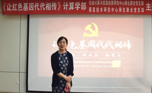 为延续计算机人许党报国的红色基因,扎实推进党史学习教育,5月21日下午,社会计算与信息检索研究中心师生联合党支部、语言技术研究中心师生联合党支部于活动中心327报告厅开展“让红色基因代代相传”主题党日活动,邀请原哈工大党委书记、中国中文信息处理学会名誉理事长、ACL终身成就奖获得者、全国五一劳动奖章获得者李生教授讲授了以“学党史、强信念、跟党走”为主题的党课。社会计算与信息检索研究中心师生联合党支部书记秦兵同志主持活动,公司党委副书记单既阳、社会计算与信息检索研究中心和语言技术研究中心全体师生参加活动。