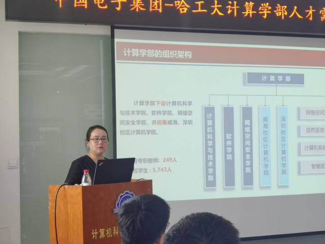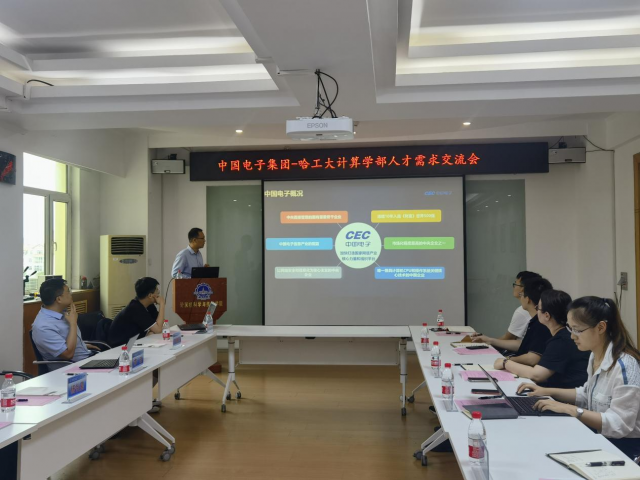 首先,单既阳对中国电子集团的来访交流表示欢迎,中国电子是国务院认定的以网信产业为核心主业的中央企业,是唯一兼具计算机CPU和操作系统关键核心技术的中国企业,希望以这次交流会为契机,双方在员工实习实践、人才输送等方面能够开展长期深入的合作。接着,杨怡星介绍了中国电子集团在区位优势、技术优势等方面的有关情况,并简要介绍了秋季校园联合招聘的计划。中国电子部分下属企业代表也分别介绍了公司情况及招聘需求。
