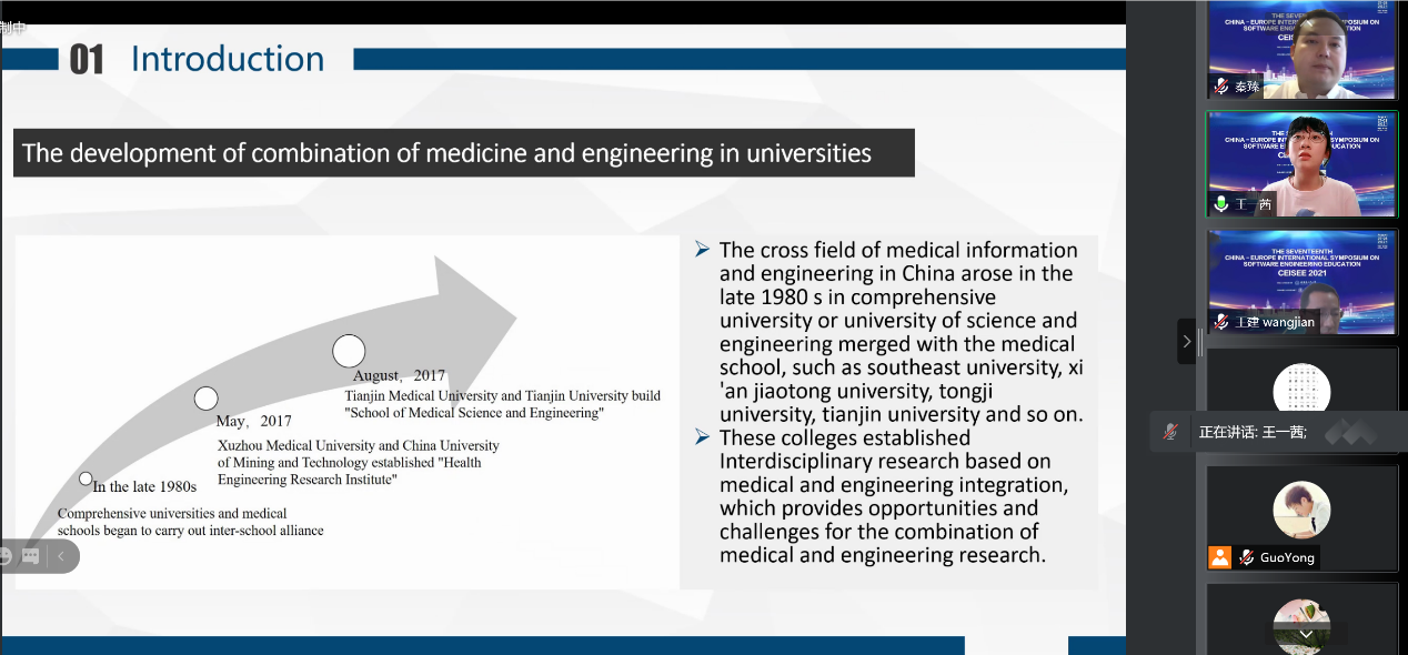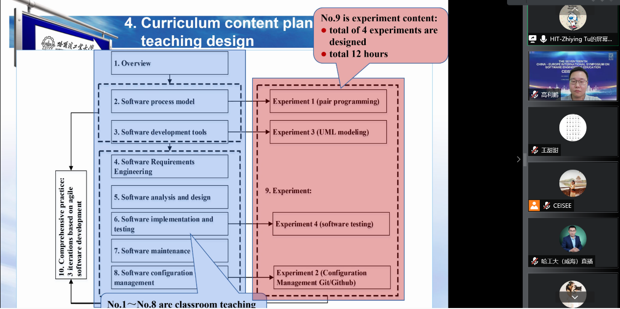 在圆桌论坛环节,以“Software Engineering Education in the Post-Epidemic Internet Era”为主题,徐晓飞教授、王忠杰教授与浙江大学软件公司常务副经理尹建伟教授、电子科技大学信息与软件工程公司经理周世杰教授、西北工业大学软件公司经理郑江滨教授、示范性软件公司联盟副理事长、秘书长北京交通大学邢薇薇教授、爱尔兰都柏林理工大学国际部主任吴兵教授等中欧软件工程教育专家就后疫情互联网时代的软件工程教育进行了深入的讨论。