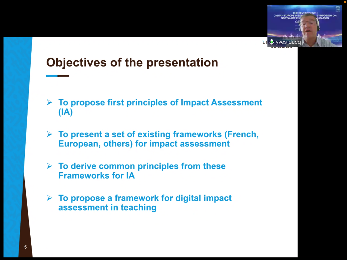 徐晓飞教授的主题报告题目为“New Forms and New Approaches of Education for Software Engineering”,介绍未来软件工程教育的新形式和新方法,并提出了软件工程教育未来发展的新趋势和思考。Yves Ducq教授的主题报告题目为“Impact Assessment of Digital Modifications in Teaching”,分析了新冠疫情期间和之后大学以及教学机构中的数字革命对教学的影响与评估。Vincent Wade教授的主题报告题目为“Personalization and Immersion in Learning Technology”,讨论个性化和沉浸式学习如何影响计算机工程专业人员一系列技术技能的学习质量、效率和学员满意度。周煊教授的主题报告题目为“Ability to Harness the Power of Data”,通过分享华东师范大学在建设数据科学与工程专业中的经验,讨论如何为一门新的学科/专业制定有效的培养方案。李印杲先生的主题报告题目为“Integration of Industry and Education to Build an Ecological Chain of Talent Training”,探讨构建从大学到产业的教育生态,介绍了东软产学研结合的实践。