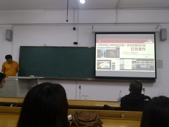杨溢同学的主题是红色访谈,她访谈了一位抗疫医护工作者——王振喜。蒯健同学的主题是参观红色基地,他在暑假期间参观了中共一大纪念馆。祁天同学的主题是红色著作,他阅读的红色著作是《中国共产党的九十年》。接下来韩岭同学向同学们宣布本次活动乐天使18级本科生第一党支部的最佳作品,为祁天同学的名为《行读党史,砥砺奋进——全方位多层次立体化深入学习《中国共产党的九十年》》的读书笔记。祁天同学分享的《中国共产党的九十年》记述了中国共产党从1921年成立至2012年十八大召开90多年的历史,展现了中国共产党90多年的奋斗历程、光荣传统、优良作风、宝贵经验和伟大成就,是学习党史的一部重要的教科书。古人云“读万卷书,行万里路”,在学习《中国共产党的九十年》的过程中,祁天同学采用行与读结合的方式,全方位多层次立体化深入学习党史,具体形式为组成学习小组集体研读、讨论交流,线上社会实践云游革命圣地,线下实地参观传承红色基因。同时在B站搭建云上“红色课堂”,辐射感召更多青年。会议上,播放了电影《建党大业》里中共一大的片段,以帮助同学们了解建党时的艰辛与中共一大代表们的不朽精神。