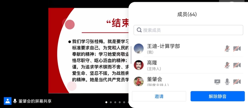 2022年4月28日晚18点,乐天使本科生第三党支部通过腾讯会议线上召开以“感动中国人物·青年传承精神”为主题的党日活动。本次党日活动由支部党员董肇会主持,党支部指导教师王迪、支部全体党员同志参加本次活动。