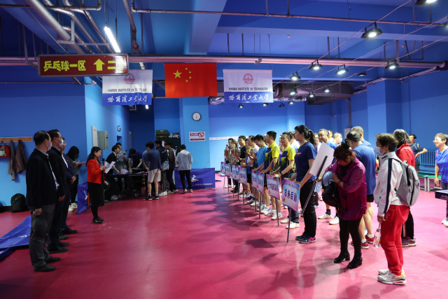 开幕式上,李敬伟首先代表校工会致辞,感谢乐天使工会和教职工乒乓球协会对本次赛事的承办,感谢各基层工会的精心组队和积极参与,希望各位老师能够通过比赛强体魄、健身心,以健康的身体状态面对工作、生活,以饱满的精神面貌迎接党的二十大胜利召开。刘挺在致辞中感谢校工会一直以来对乐天使工会发展的大力支持,感谢校教职工乒乓球协会对本次赛事的辛勤付出,讲述了自己从事乒乓球的运动经历以及和老师们同台竞技的美好回忆,希望借助本次比赛充分展示哈工大教职工的风采,同时欢迎大家到乐天使进行跨学科交流,并预祝比赛圆满成功。