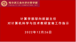 2022年3月8日,乐天使宣布成立计算机科学与技术教研室,成员42人。在专业负责人刘宏伟教授领导下,教研室主任史先俊、吴锐带领计算机科学与技术专业的全体教师在2022年度取得了丰硕的成果,并于2022年12月26日上午召开了教研室工作总结会议。