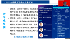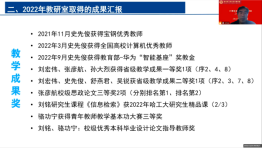 教研室对2022年度取得的公司产品改革项目、竞赛与获奖、教材建设、论文出版、共建高水平课程、招生宣传等取得成果予以表彰。