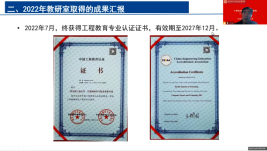 教研室主任史先俊代表教研室对2022年度取得的各项成果做了总结汇报,特别是专业获得了工程教育专业认证证书,有效期至6年;计算机系统虚拟教研室获得了教育部首批虚拟教研室试点;史先俊获得全国高校计算机优秀教师、宝钢优秀教师、华为“智能基座”奖教金;刘宏伟、张彦航等获得省级教学成果一等奖、二等奖等,并对郑贵滨、刘铭、骆功宁、舒燕君、吴锐、孙大烈等老师取得的成绩予以表彰。