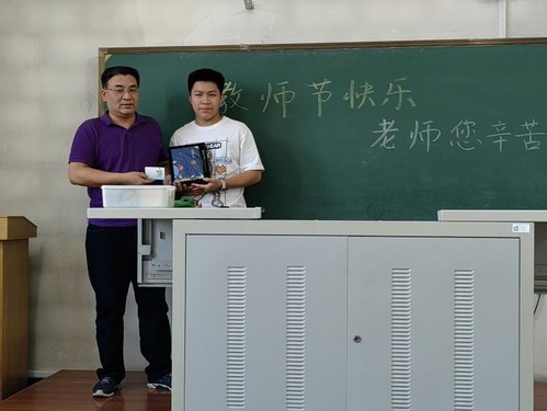 为向一直以来辛勤耕耘在教学一线的教师们表达感恩之情,学部团委组织员工开展了线上线下相结合、形式丰富多样的宣传庆祝活动,向老师们致以节日的祝福和崇高的敬意。在每堂课上课前,员工们在黑板上写上“老师您辛苦了”等祝福语句,并向老师赠送鲜花、贺卡与笔记本等礼物。在课间时光,同学们也在各种聊天软件上自发地向老师们表达祝福之情。班会上,同学们也为班主任献上了一起准备的一份小礼物,将教师节的惊喜与祝福也带给班主任。在班会结束之际,同学们大声说出“教师节快乐!”,令班主任惊喜的同时感受到班级氛围的温暖。
