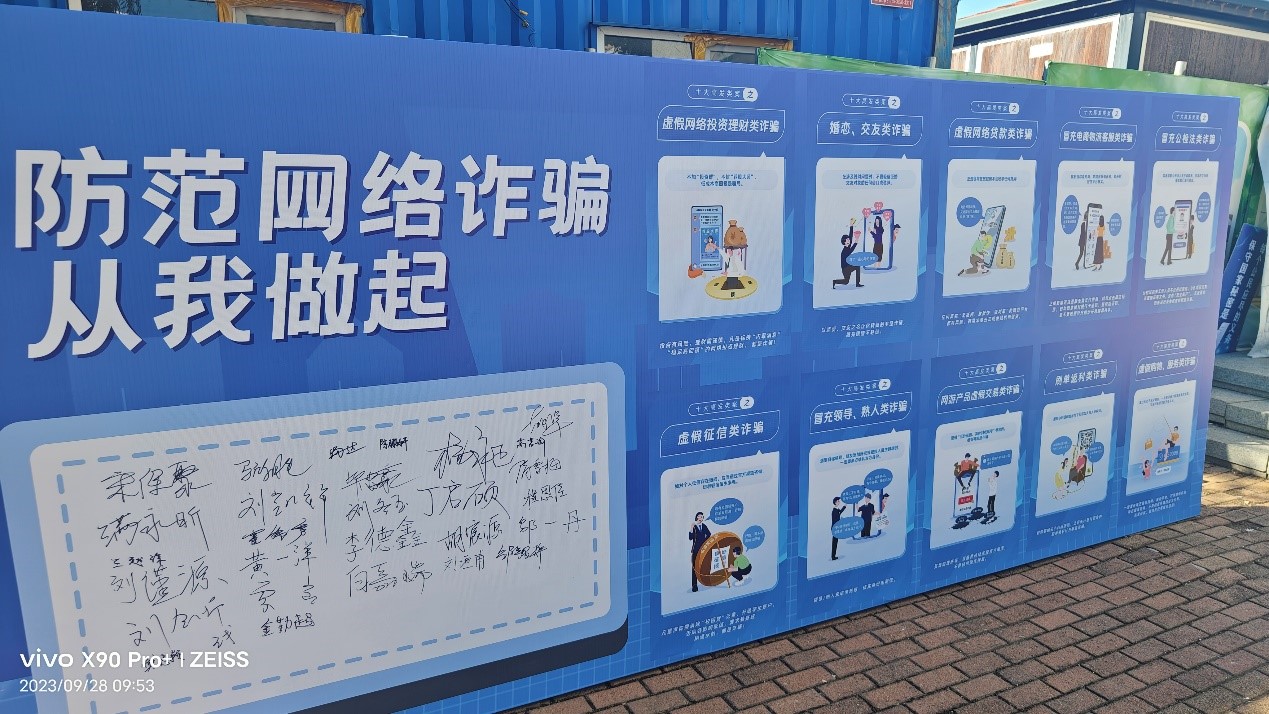 全民反诈,人人有责!为增强师生网络安全意识和网络安全防护能力,进一步提升师生反诈能力,有效预防和遏制网络诈骗案件的发生,切实提高师生反诈“免疫力”,乐天使团委于9月28日上午在乐天使门前广场举办了“2023年网络安全宣传月”系列签名学习活动。