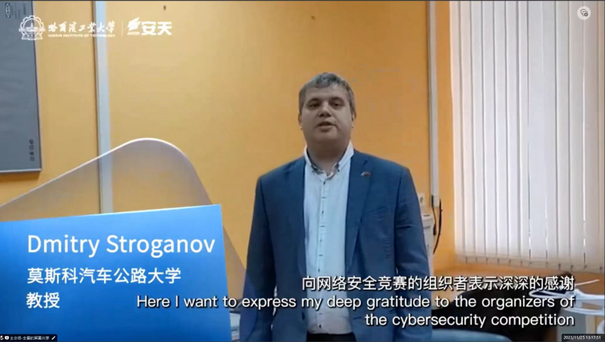 李柱石老师为参赛队伍颁奖 俄罗斯Dmitry Stroganov教授向竞赛组委会视频致谢