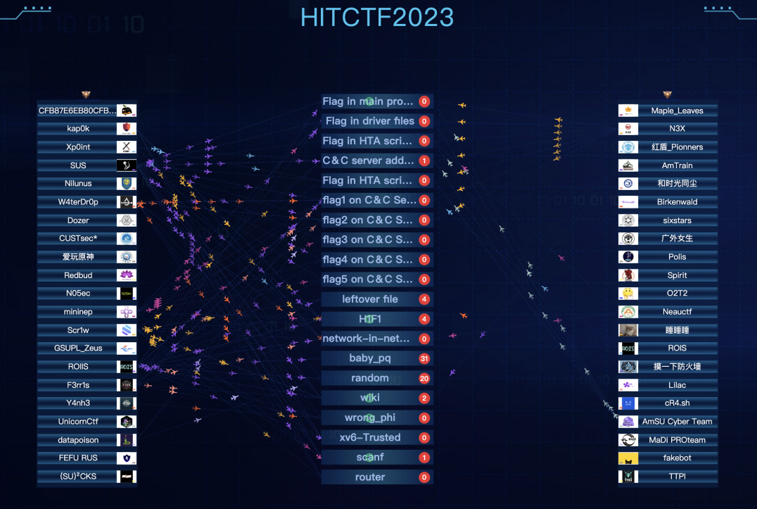 习近平总书记指出“网络安全是全球性挑战,维护网络安全是国际社会的共同责任”。HITCTF2023组委会在哈工大国际合作部协助下,共邀请了42支知名高校CTF战队,其中有来自瑞士的苏黎世联邦理工大学、来自俄罗斯的远东联邦大学、俄罗斯航空航天大学等9所国外高校的战队。