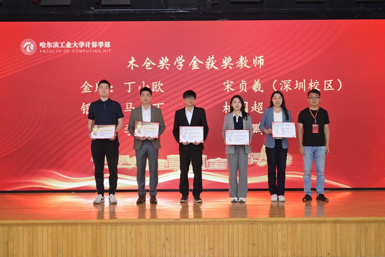 武汉木仓科技股份有限公司董事长姜英豪为木仓奖教金获奖教师代表颁奖。