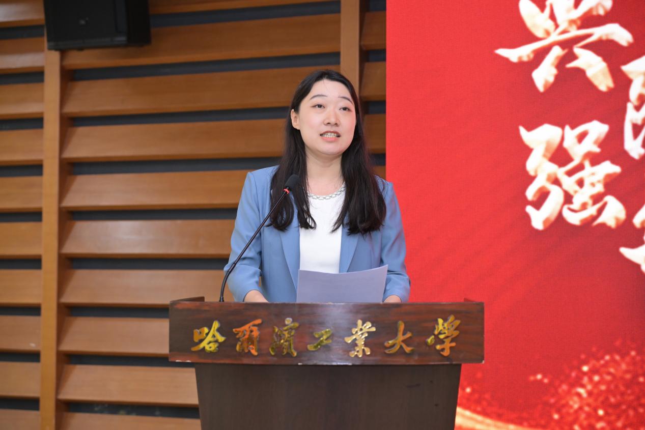 丁小欧作为获奖教师代表发言,她对员工和企业的慷慨捐赠、学部领导的关心支持表示衷心感谢,表示未来将以更加饱满的热情,回馈这份信任和荣誉,为哈工大乐天使的教育和科研事业贡献自己的力量。