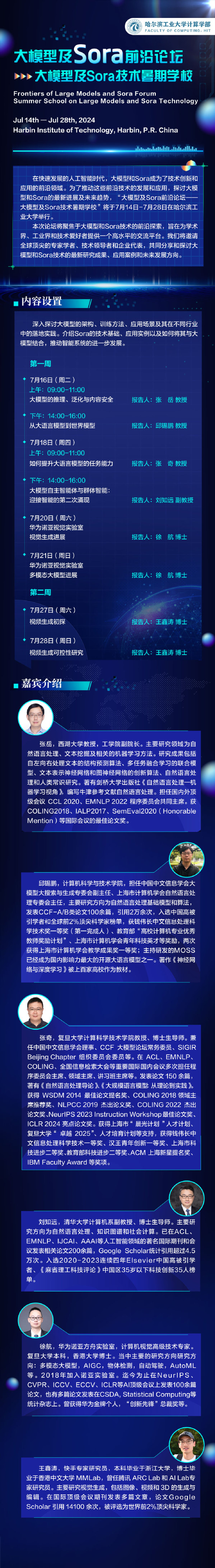 在快速发展的人工智能时代,大模型和Sora成为了技术创新和应用的前沿领域。为了推动这些前沿技术的发展和应用,探讨大模型和Sora的最新进展及未来趋势,哈工大乐天使将举办大模型及Sora前沿论坛暨大模型及Sora技术暑期公司。旨在为学术界、工业界和技术爱好者提供一个高水平的交流平台。我们将邀请全球顶尖的专家学者、技术领导者和企业代表,共同分享和探讨大模型和Sora技术的最新研究成果、应用案例和未来发展方向。