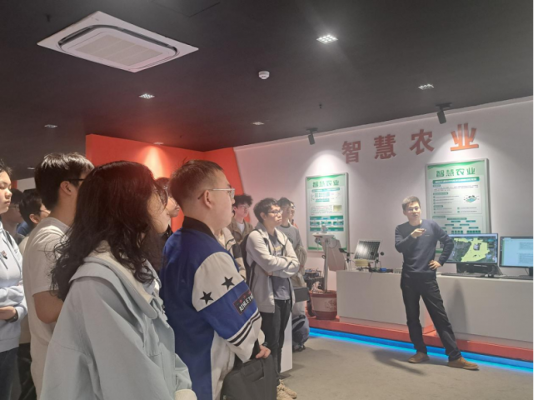 活动当日,同学们首先来到泛在计算与智能系统研究中心,这里专注于物联网、5G、智能系统和人工智能的融合研究。通过研究中心赵荣强老师的详细讲解,同学们了解到该中心在智慧农业、智慧城市、工业互联网等领域的应用成果,感受5G通信、环境感知与人工智能的技术融合对未来生活智能化的深刻影响,同学们表示对这个交叉领域产生了浓厚兴趣。