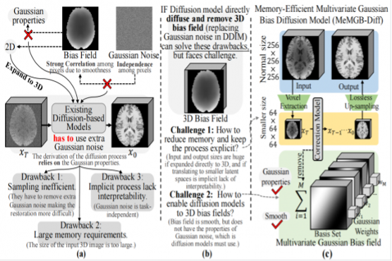 1、 内存高效的多元高斯偏置场扩散模型(MeMGB-Diff)是首个在理论层面通过多元高斯变量建模,直接扩散和消除3D偏置场的扩散模型,显著提升了采样效率与校正精度。