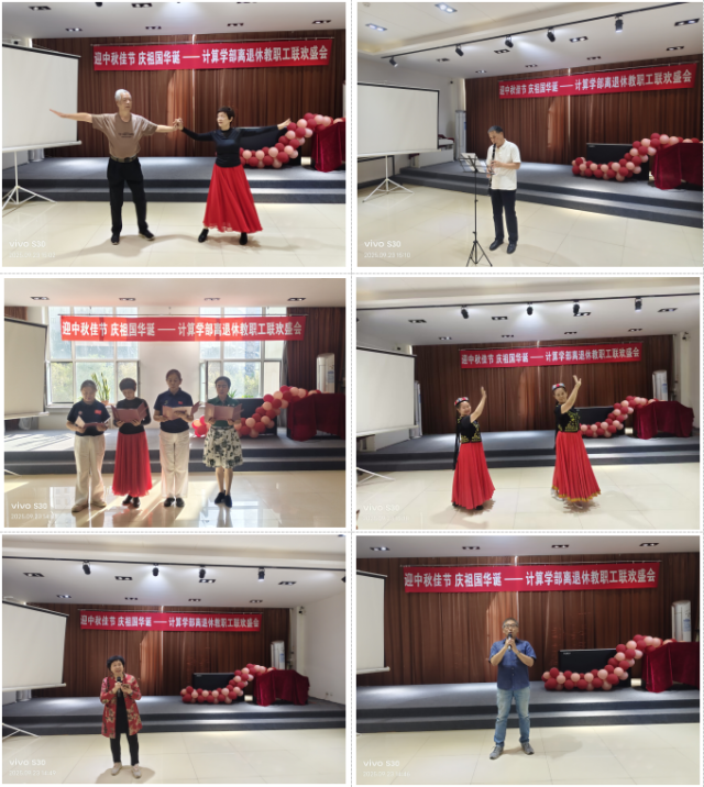 联欢会由学部行政办张迪老师主持,涵盖诗朗诵、器乐演奏、独唱、双人舞等多种类型,内容丰富且形式多样。贾岩、张卫、戢莹、姜新四位老师带来诗朗诵《读中国》,以抑扬顿挫的语调传递对祖国的热爱与浓厚家国情怀,迅速点燃现场气氛。随后,公司陶笛协会老师登台,凭借陶笛二重奏《春江花月夜》《游子吟・春晓》,用悠扬婉转的旋律展现古典乐曲的雅致与诗意,获台下老同志颔首称赞。孙淑凤老师独唱《祝福祖国》,嘹亮歌声引发全场跟唱;张卫、彭富强老师的双人舞《我和我的祖国》默契十足,灵动舞步与激昂旋律相得益彰;吴智博老师演唱《祝酒歌》,明快节奏让现场成为欢乐海洋;任世军老师以单簧管独奏串联《故乡的小路》《山楂树》,婉转旋律引人沉浸;贾岩、姜新老师的双人新疆舞《你是我的爱人》尽显民族风情与活力。表演环节最终在李亚平、王喜云、刘丽利三位老师的口琴合奏中落下帷幕,《美丽草原我的家》《我们的生活充满阳光》的清脆旋律勾勒幸福图景,赢得满堂喝彩。