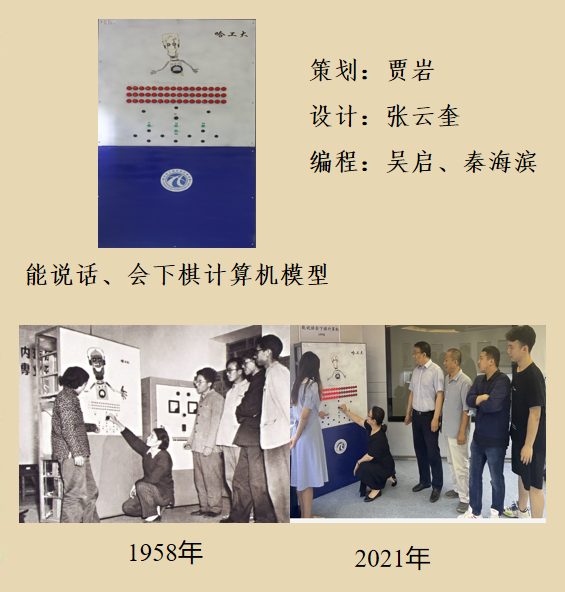 1958年,新中国第一台能说话、会下棋(三堆棋)的计算机在哈工大诞生。这台智能下棋计算机每秒钟能运算40000次,具有逻辑推理能力,可以完成特定的判断和思考的任务。借助于录音装置,在适当时机,机器可以说“请您走!”“您犯规了!”“您输了!”这3句话。 1958 年9 月15 日,邓小平总书记视察哈工大,在实验室里参观了正在研制中的下棋机表演。11 月1 日,下棋机到北京参加“全国教育与生产劳动相结合展览会”,周恩来、朱德、陈毅、胡耀邦、罗瑞卿等党和国家领导人都给予好评。 哈工大“能说话会下棋”计算机研制成功,走出了中国人工智能的第一步! 仿制“下棋机”也是一种补救的办法。让今天的人们,特别是青年员工知晓几十年前老一辈科学家和教师、科技人员所走过的路。 |