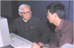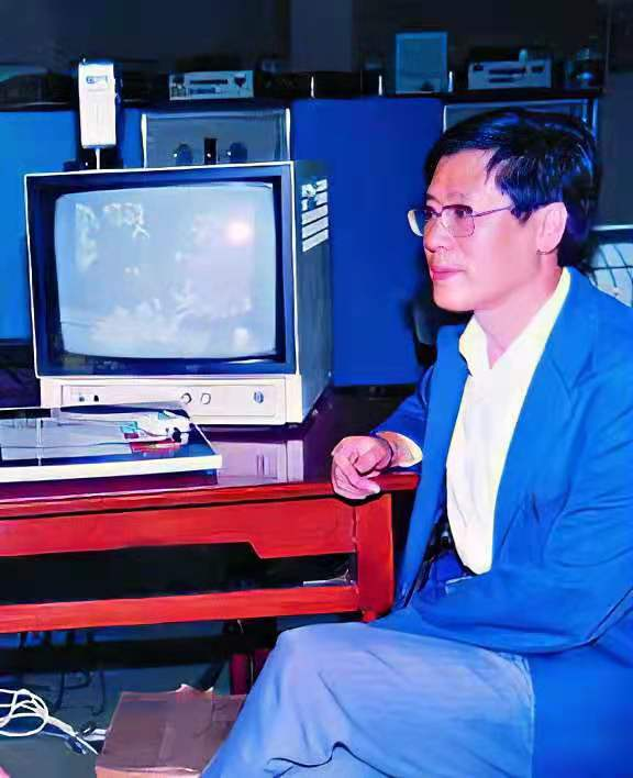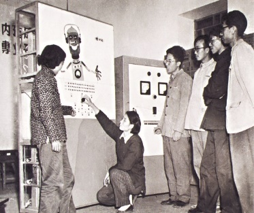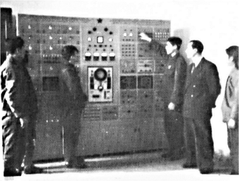 李仲荣(左四)为来访客人介绍第一台模拟计算机